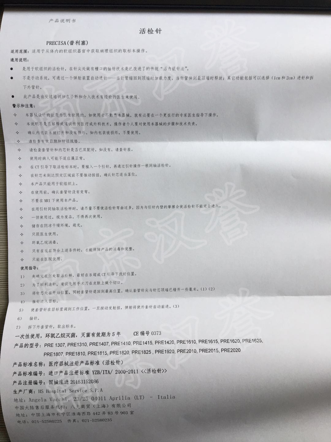 為什么要說這樣一件事呢,小編的意思是有很多時候,你不需要的東西,有可能正是別人夢寐以求的(可能有點夸張哈)。所以哪怕只能盡小小的一份綿薄之力,南京漢譽醫(yī)療也定不負所望。為了給更多有需要的人幫助,小編今天就把普利斯活檢針的說明書發(fā)出來分享給大家。
