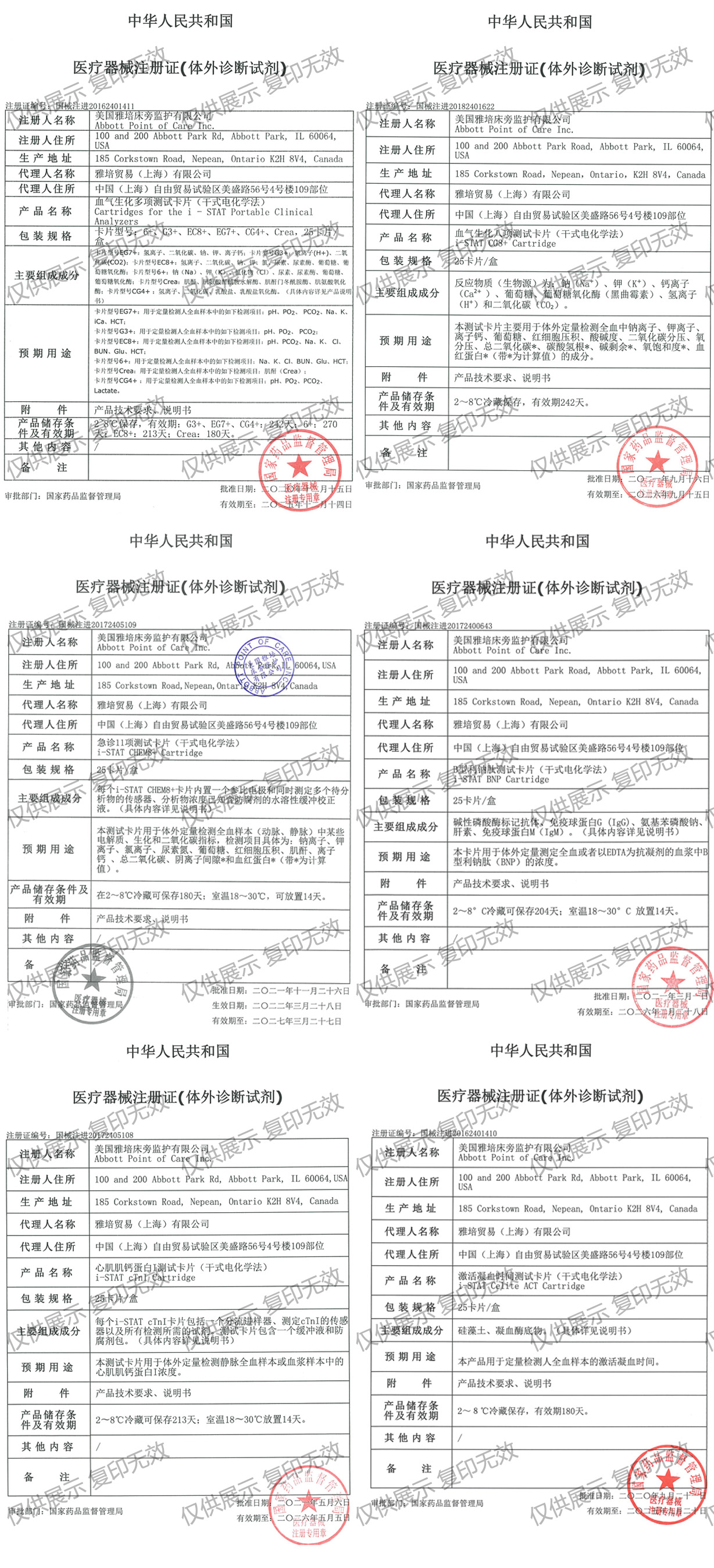 雅培血氣測試卡多種型號,檢測項目多,滿足不同的檢測需求。單人份單卡方便快捷,不易造成浪費。