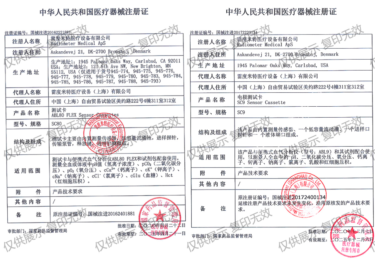 雷度ABL9血?dú)鉁y(cè)試卡注冊(cè)證編號(hào):國(guó)械注進(jìn)20172220134