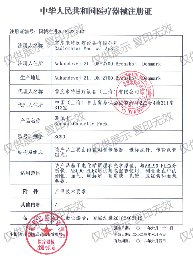 雷度ABL90血?dú)鉁y(cè)試卡注冊(cè)證編號(hào):國(guó)械注進(jìn)20182222112