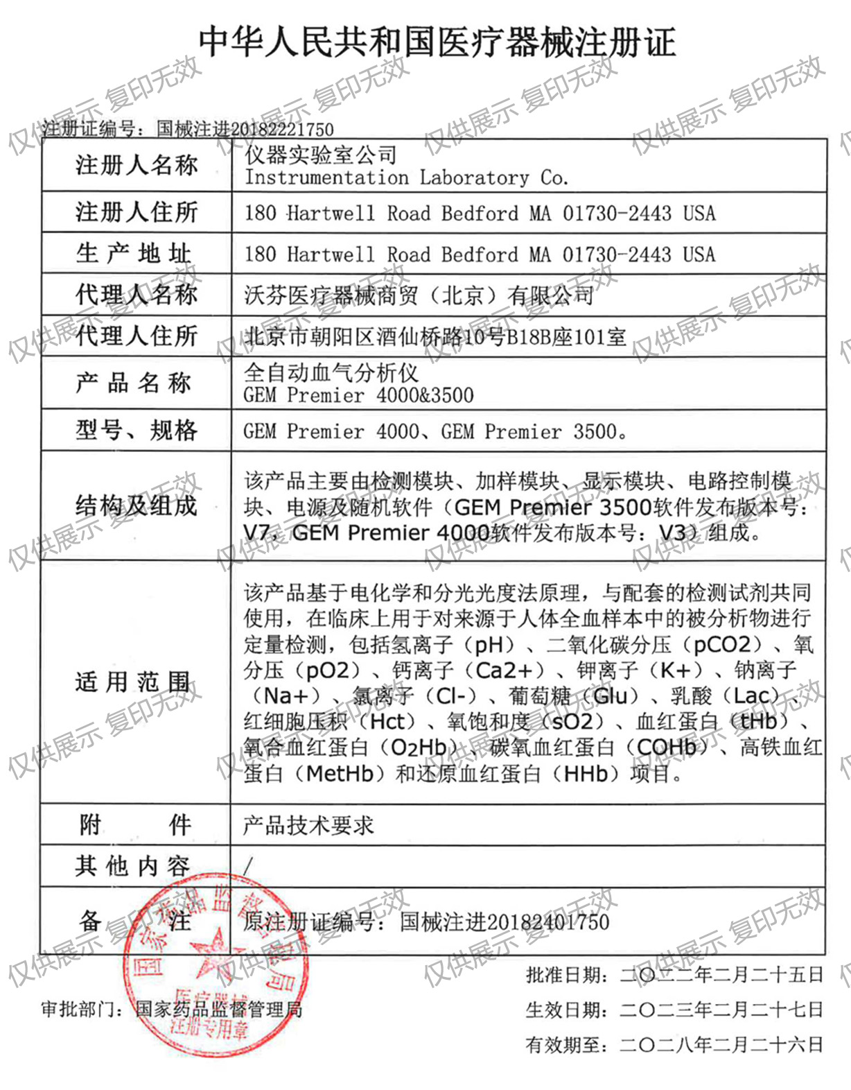 結(jié)構(gòu)及組成:該產(chǎn)品主要由檢測(cè)模塊、加樣模塊、顯示模塊、電路控制模塊、電源及隨機(jī)軟件(GEM Premier 3500軟件發(fā)布版本號(hào):V7)組成。