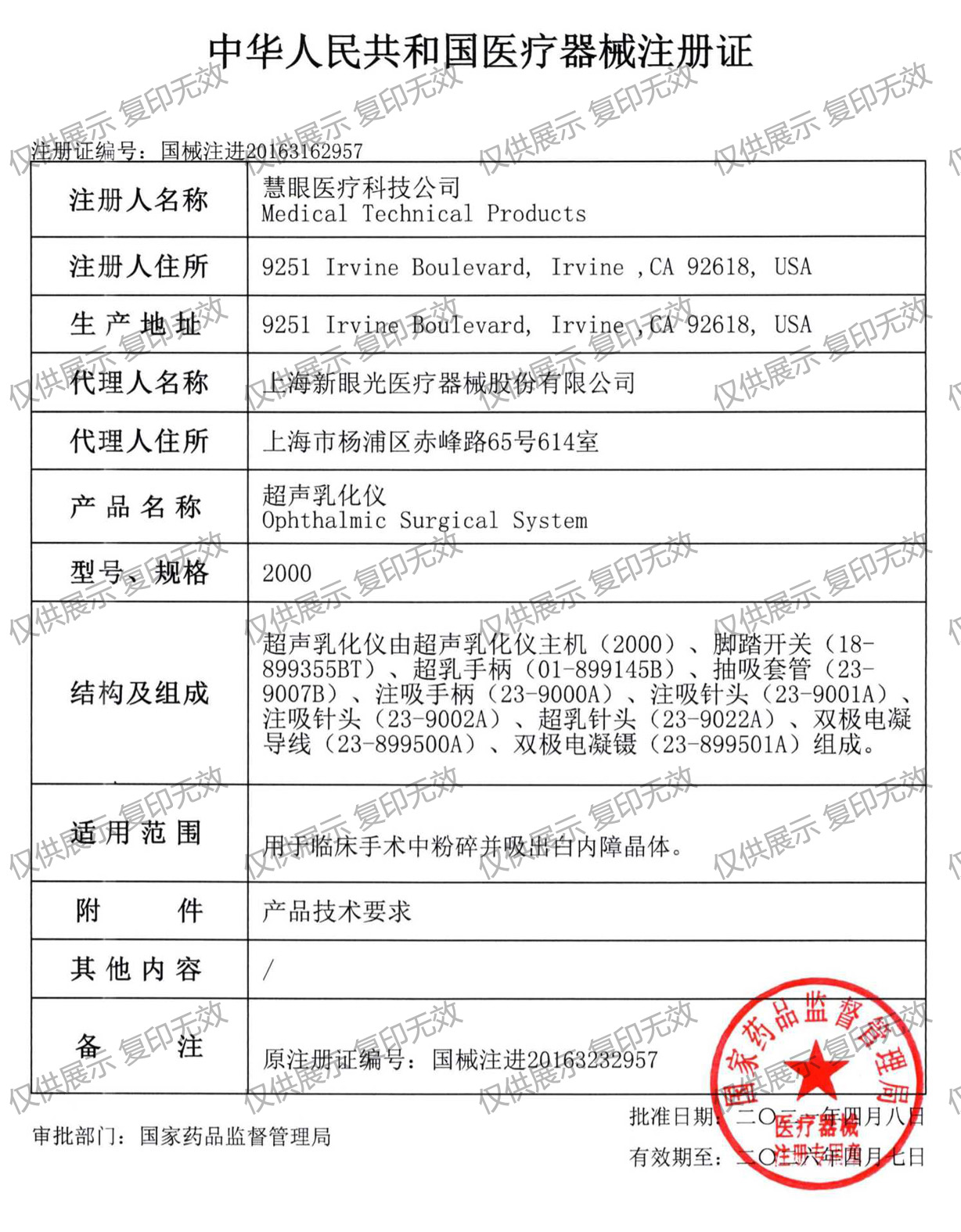 注冊證編號:國械注進(jìn)20163162957